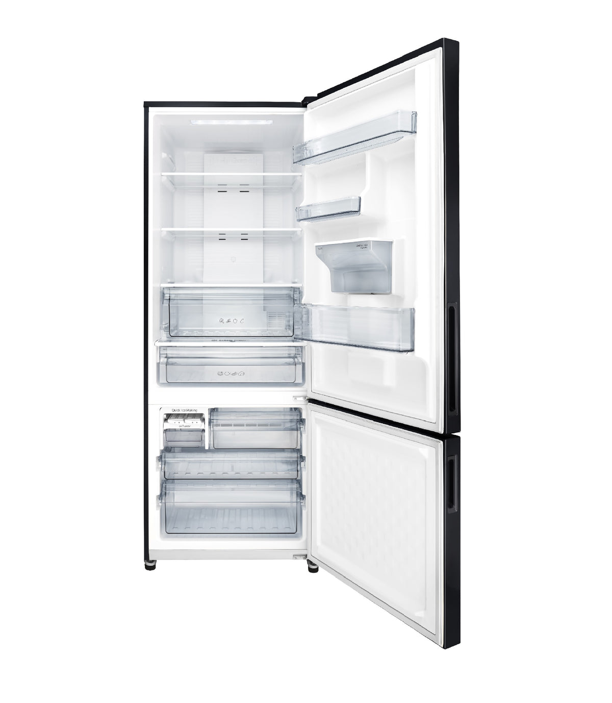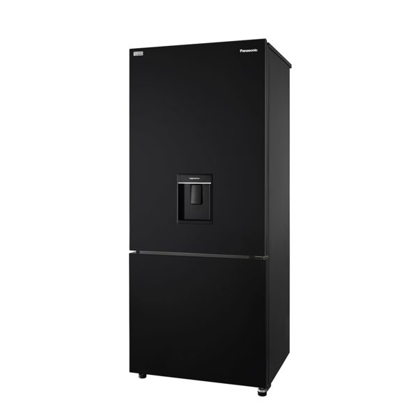 - Panasonic 377L Bottom Mount Fridge Freezer Black Steel
