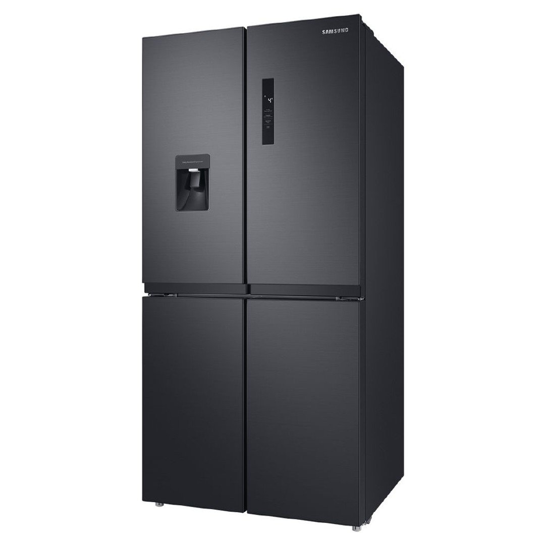 488L Flat door design Fridge Freezer with non-plumbed Water dispenser, Twist ice maker, Digital Inverter Compressor, 3 Star Energy Rating, Gentle Matte Black finish, Twin Cooling Plus, Interior LED light, Power Cool, Power Freeze and Front LED Display.