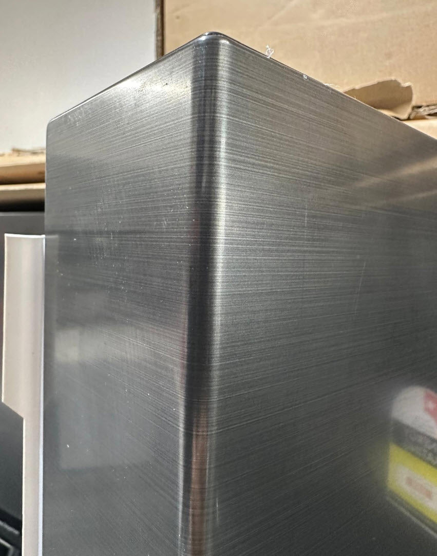 This does have some marks on the doors and price reflects that photos coming last 2 photos of actual unit, to note we cant bring up the true colr as this is black stainless same color as first 3 photos, photo supplied looks more silver and with that makes the imperfections stand out, its not so noticeable when shown in the dark color , i hsave taken a photo of the corner of the door where i managed to get a more realistic color