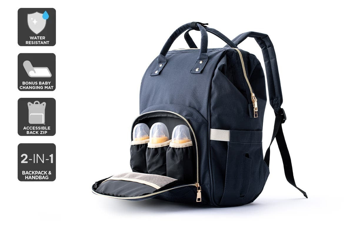 - Insulated bottle pockets help keep milk warm and water bottles cool
