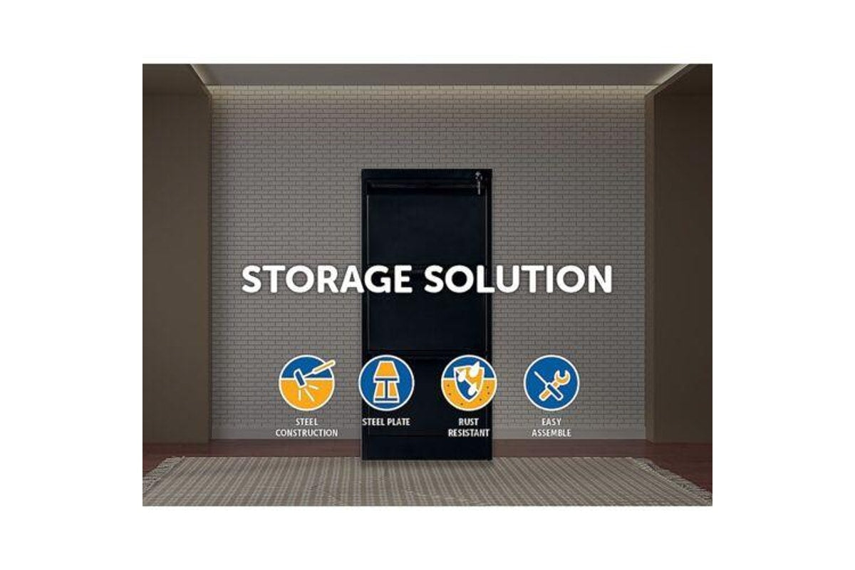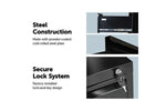 The cabinet is constructed with solid cold-rolled steel plate for excellent sturdiness and durability, not to mention an attractive look. The steel is also powder-coated to resist corrosion. The cabinet measures 102.7 × 45 × 62 cm, and the maximum recommended weight capacity is approximately 40kg per drawer. Privacy and security are assured with a simple lock and key design. There are spaces designated for labels to help identify drawers. Assembly is straightforward, and full assembly instructions are included. The lock comes with 2 keys.