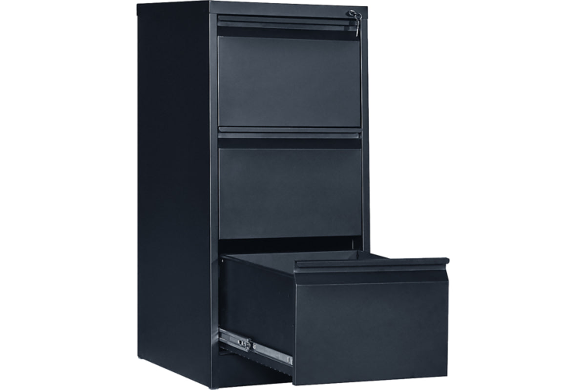 3 vertically-stacked filing drawers Colour: Black Cabinet dimensions: 102.7 × 45 × 62 cm (H x W x D) Carton dimensions: 115 × 73 × 13 cm (H x W x D) Privacy and security with lock-and-key design Recommended weight capacity is approximately 40kg per drawer Durable cold-rolled steel plate construction Powder-coated to resist corrosion Easy to assemble; instructions included