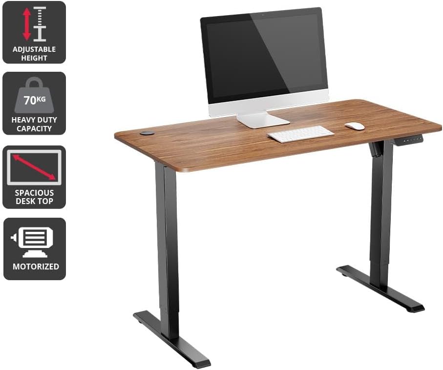 - Maximum weight capacity of 70kg Add all the awesome benefits of a standing desk to your home office with the *Ergolux Electric Standing Desk (Walnut)*. Stable height adjustment This electric standing desk's steel frame has a height range between 720 - 1140mm and an accessible control panel for easy height adjustment while you work or play