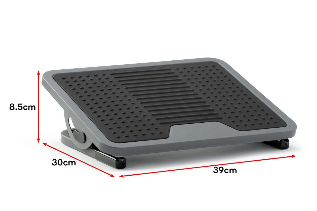 Improve the comfort of your office at home or work with this sturdy, adjustable footrest that boasts customisable height and angle and has a thermoplastic textured massaging surface.