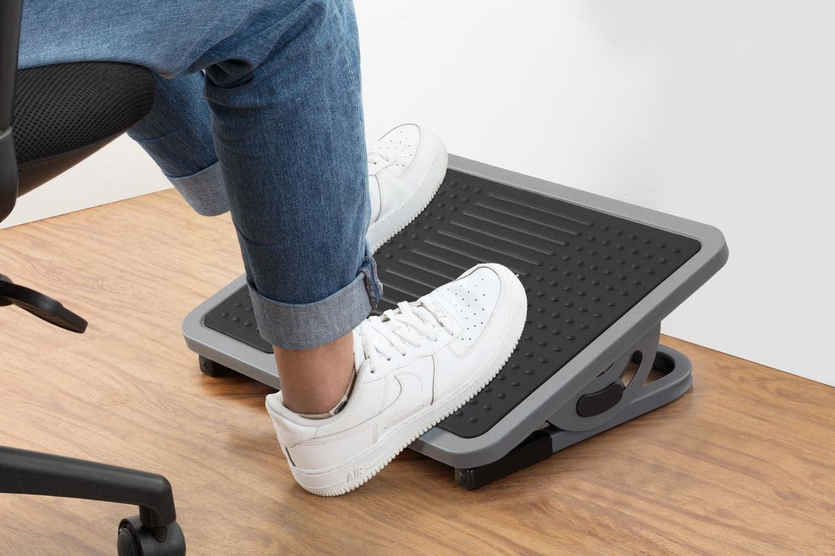 A footrest can help to alleviate muscular tension in the ankles and legs and reduce pressure in the lower back by providing support and encouraging you to sit straight in your chair. It can also help improve circulation by softening the angle of your legs, which can decrease swelling, the appearance of varicose veins and even deep vein thrombosis.