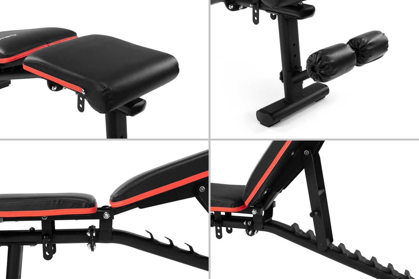 Maximise your gains with this comfortable weight bench that features an adjustable seat and leg par positions for added stability and gives you the option of multiple incline and decline angles for a range of exercises.