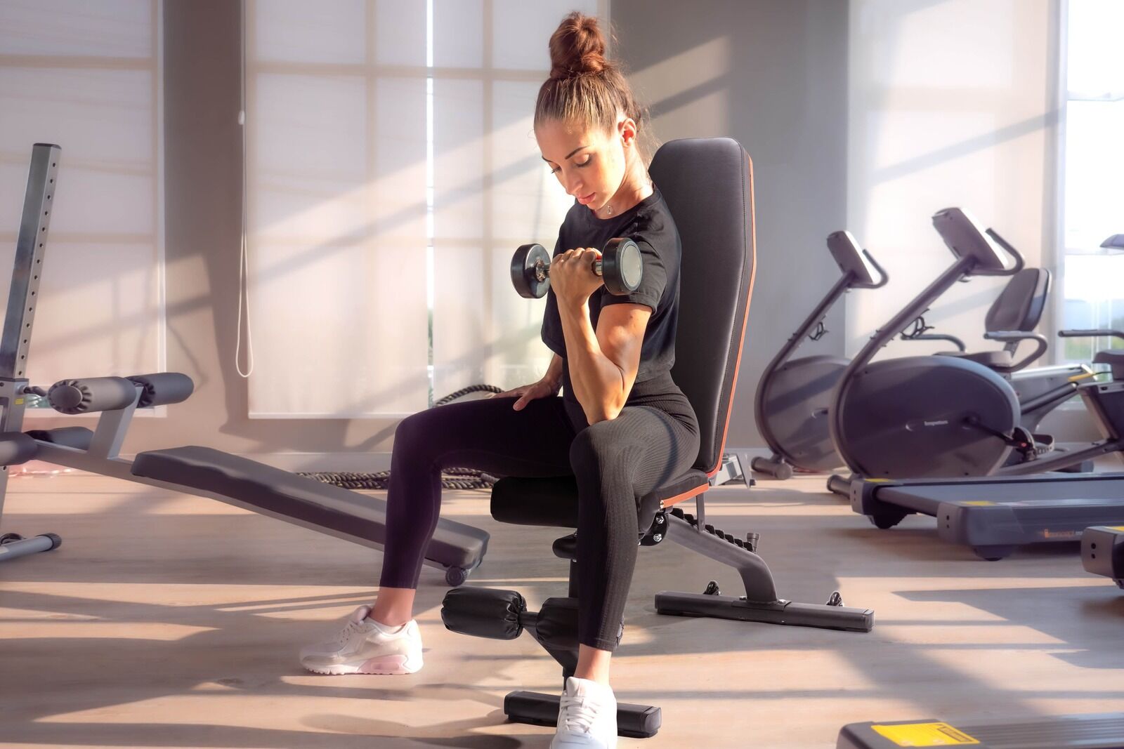 Bench easily adjusts to incline, flat, and decline positions for different exercises