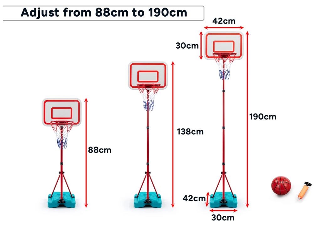 This basketball hoop can be set from 88cm to 190cm, making it suitable for children of various ages and sizes. As your child grows, the hoop can be easily adjusted to provide an ongoing challenge and help them develop their basketball skills. This versatility ensures that the set remains a valuable play accessory for years to come.
