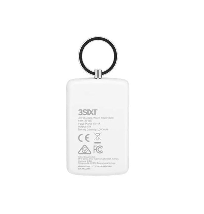 3SIXT JetPak Apple Watch 1000mAh Power Bank Keyring - White 3S-1187