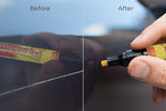 The repair kit looks like an ordinary pen. Simply apply over the light scratch, wipe off the excess with a paper towel, and within hours most scratches will begin to disappear.