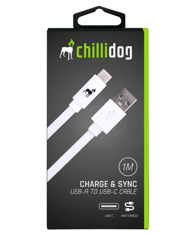 The Chillidog USB-C to USB-A charge cable is designed for charging your smart device from a USB-A outlet on a wall adaptor, laptop or usb hub and supports up to 3.0A of power delivery.