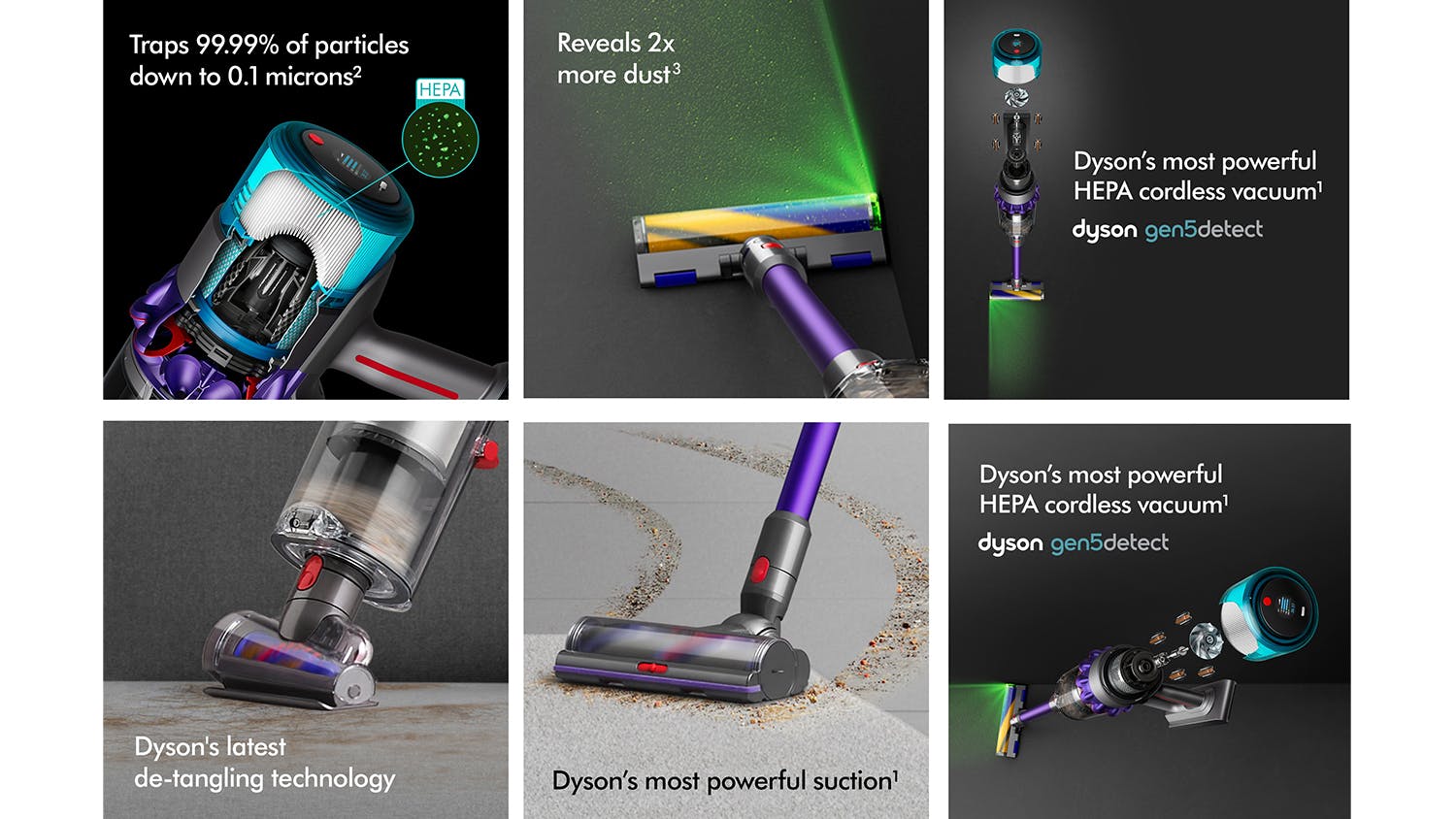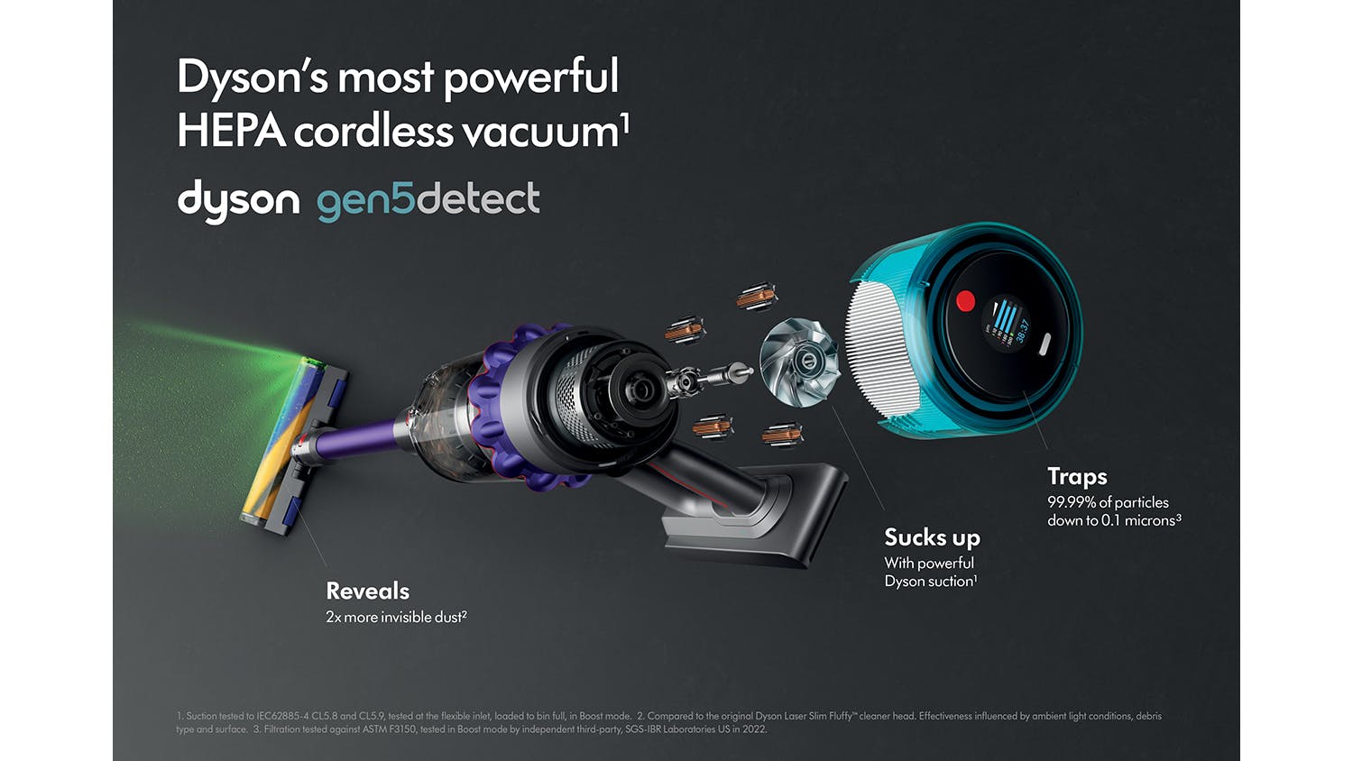 - Whole-Home Deep Cleaning: Incorporating the innovative Dyson Cordless Technology, the Gen5detect™ Absolute Vacuum Cleaner offers a practical solution for tackling the mess on your floors, sofa, stairs, and other hard-to-reach areas of your home.