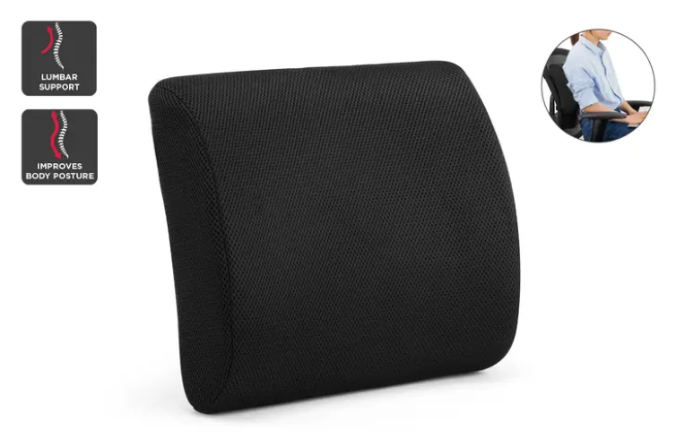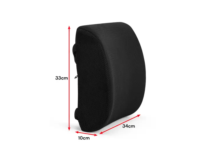 Improve your sitting posture with the Ergolux Lumbar Support Back Cushion (Black) that can easily be adjusted depending on your preference and what’s comfortable for you whether its making your desk space more ergonomic, making your car ride more comfortable or even feeling supported your dining table. Lower back comfort A lumbar support cushion helps create a more natural curve of the spine when you are sitting down, and can help to reduce strain on your lower back as it more evenly distributes, and holds, your bodyweight. Adaptive memory foam Enjoy the superior comfort of memory foam that moulds to your shape while providing a perfect amount of resistance when in use, before returning to its original shape when not in use. Versatile use This elastic buckle design makes it easy to adjust the lumbar support depending on where you find comfortable. Adjust throughout the day according on your needs or even easily transport it from the office to the car to the home.