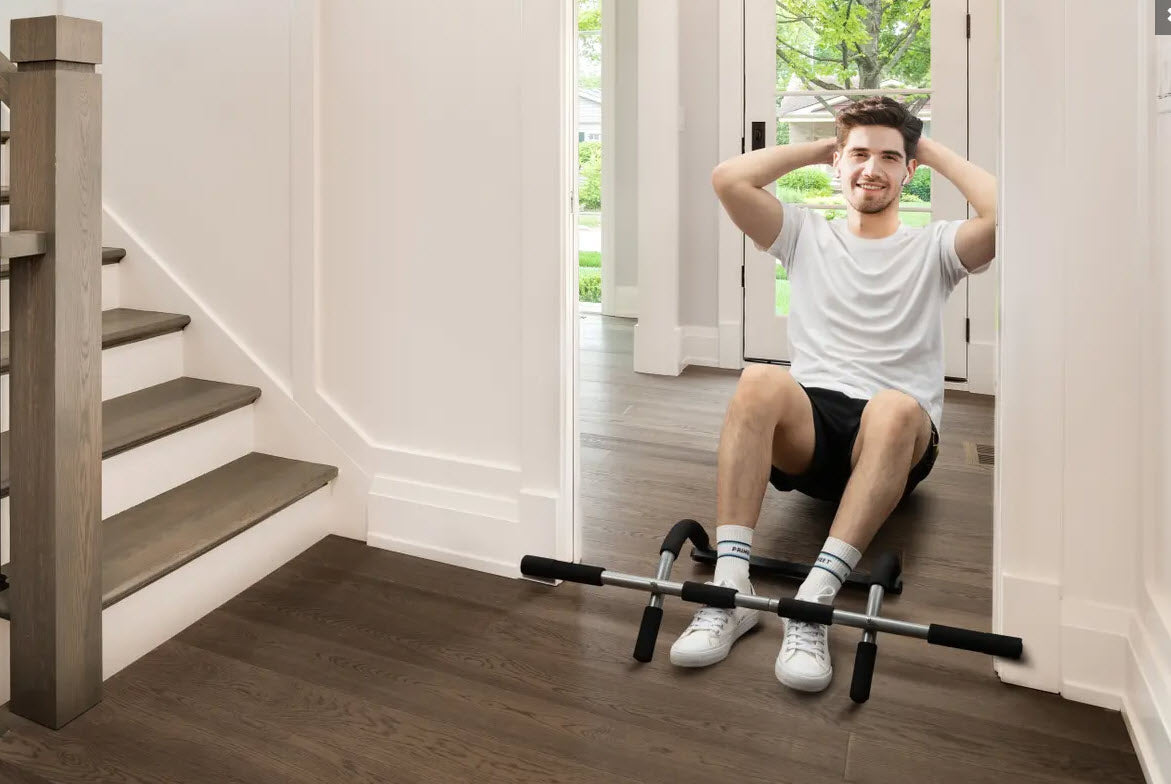 Engage in incidental exercise more often with a chin up bar that reminds you to work out, and can be used multiple times throughout the day to build strength gradually, and set the pace you want every time.