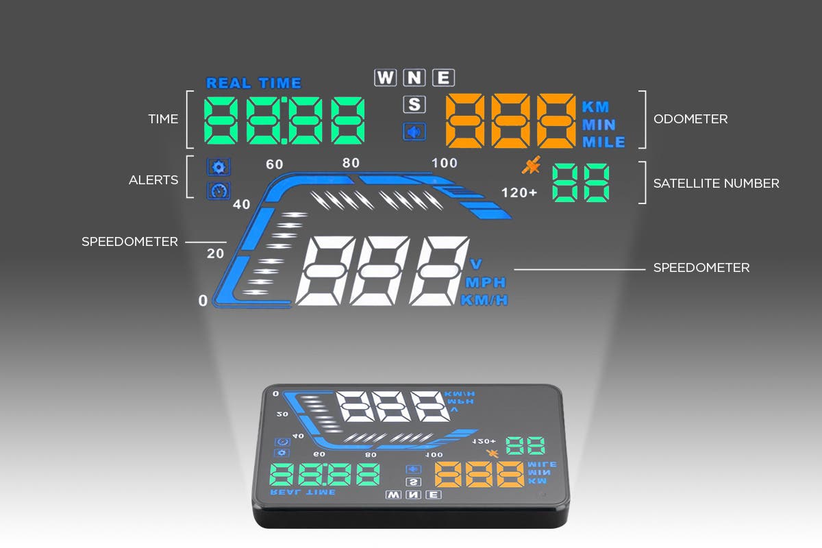 GPS satellite tracking sends information including your driving speed straight to your device, which projects this important information onto your windshield, directly in your driving line of sight.