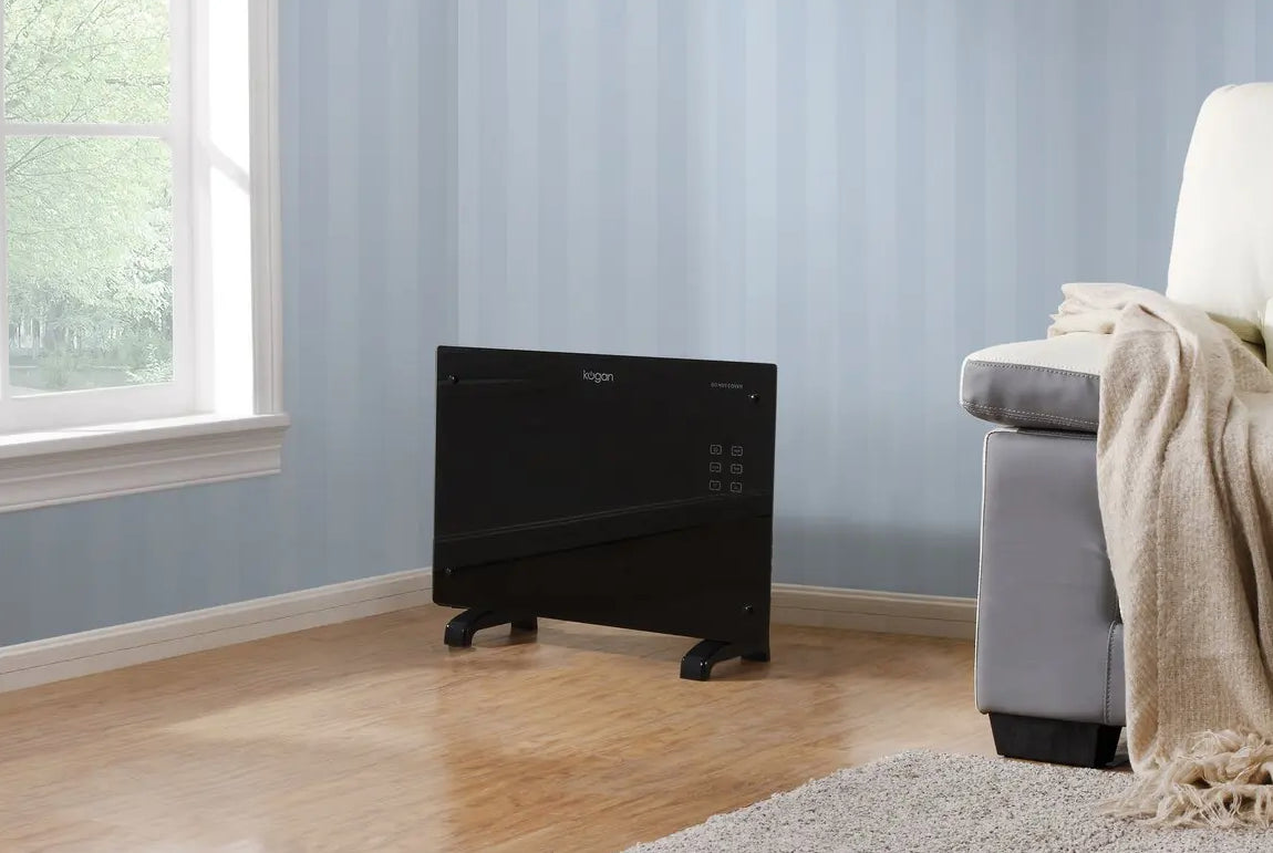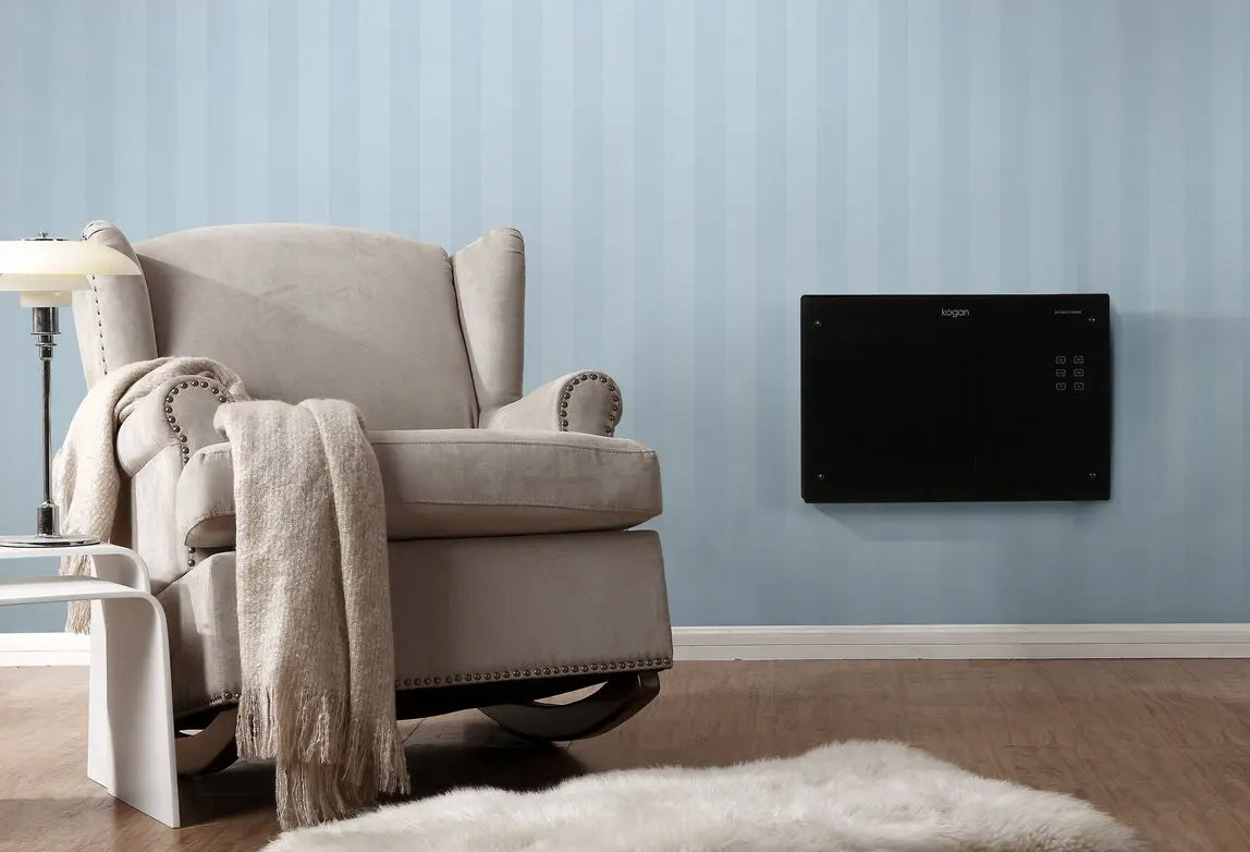 - Kogan 1500W Black Glass Portable Electric Panel Heater