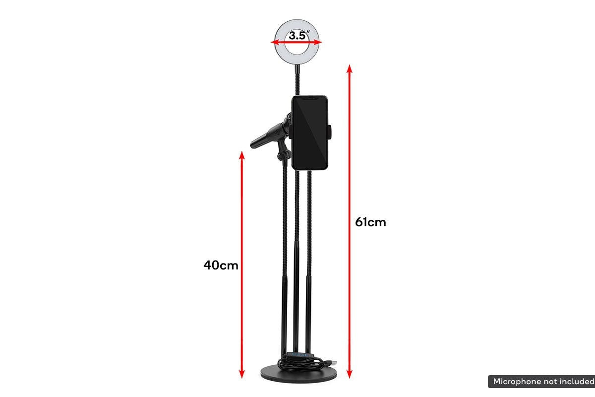 Dimensions: 20 × 16 × 6cm | Ring light rod: 61cm | Phone holder rod: 40 cm | Microphone holder rod: 40cm
