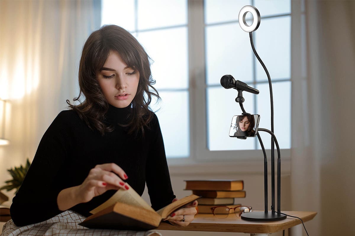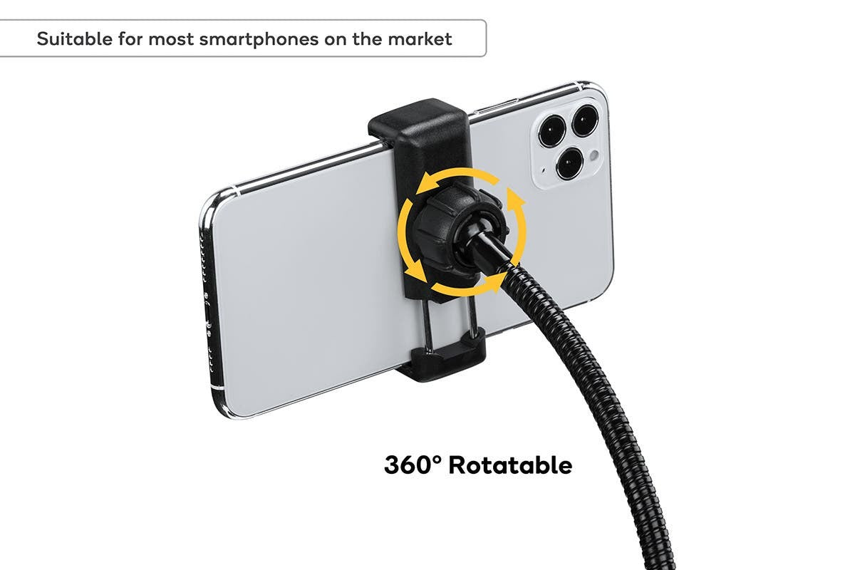 Made with three 360° flexible arms, this handy device provides you with an LED ring light and two separate mounts that hold your phone and microphone in any position to help you capture perfectly angled, well-lit photos and high-quality sounding clips.