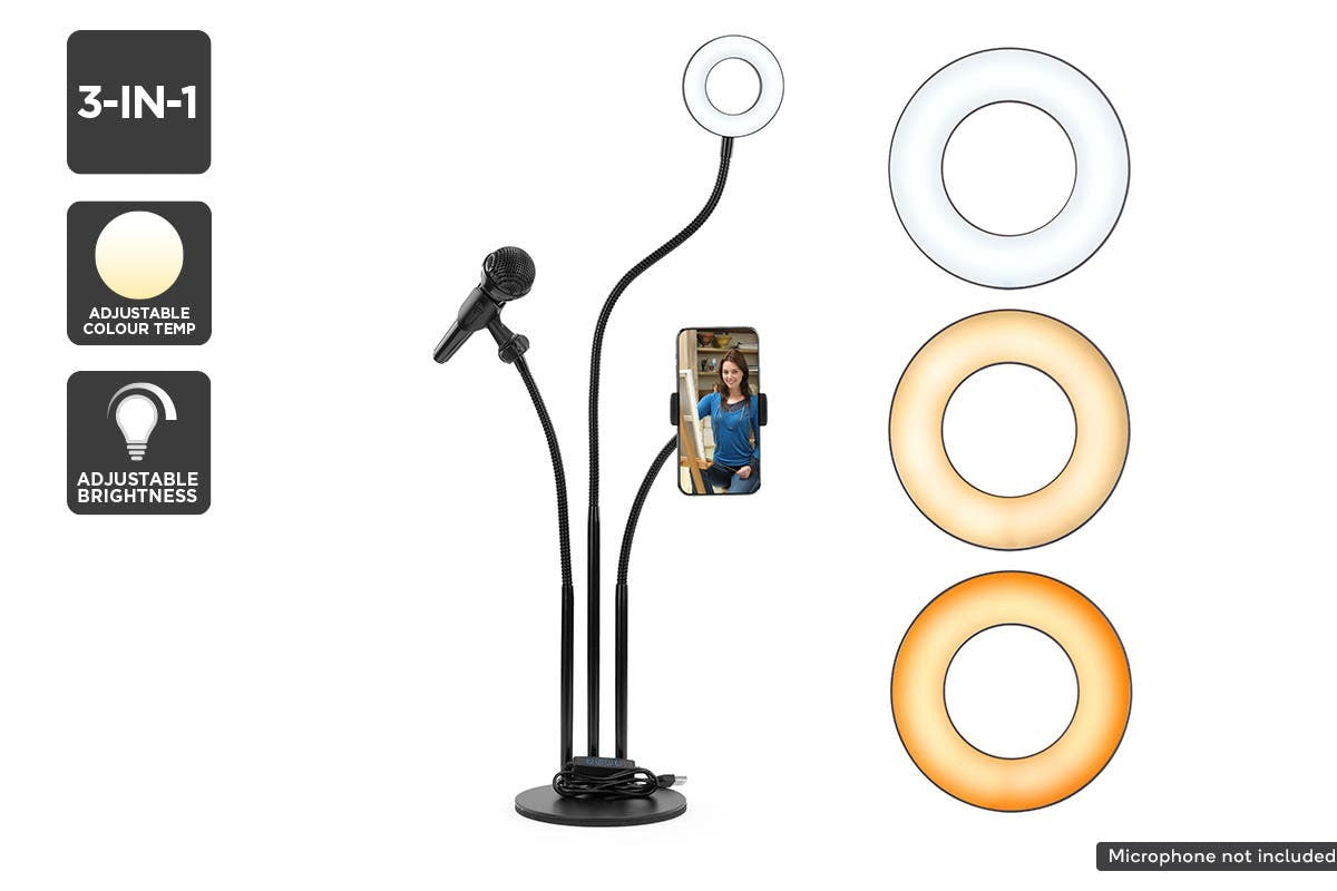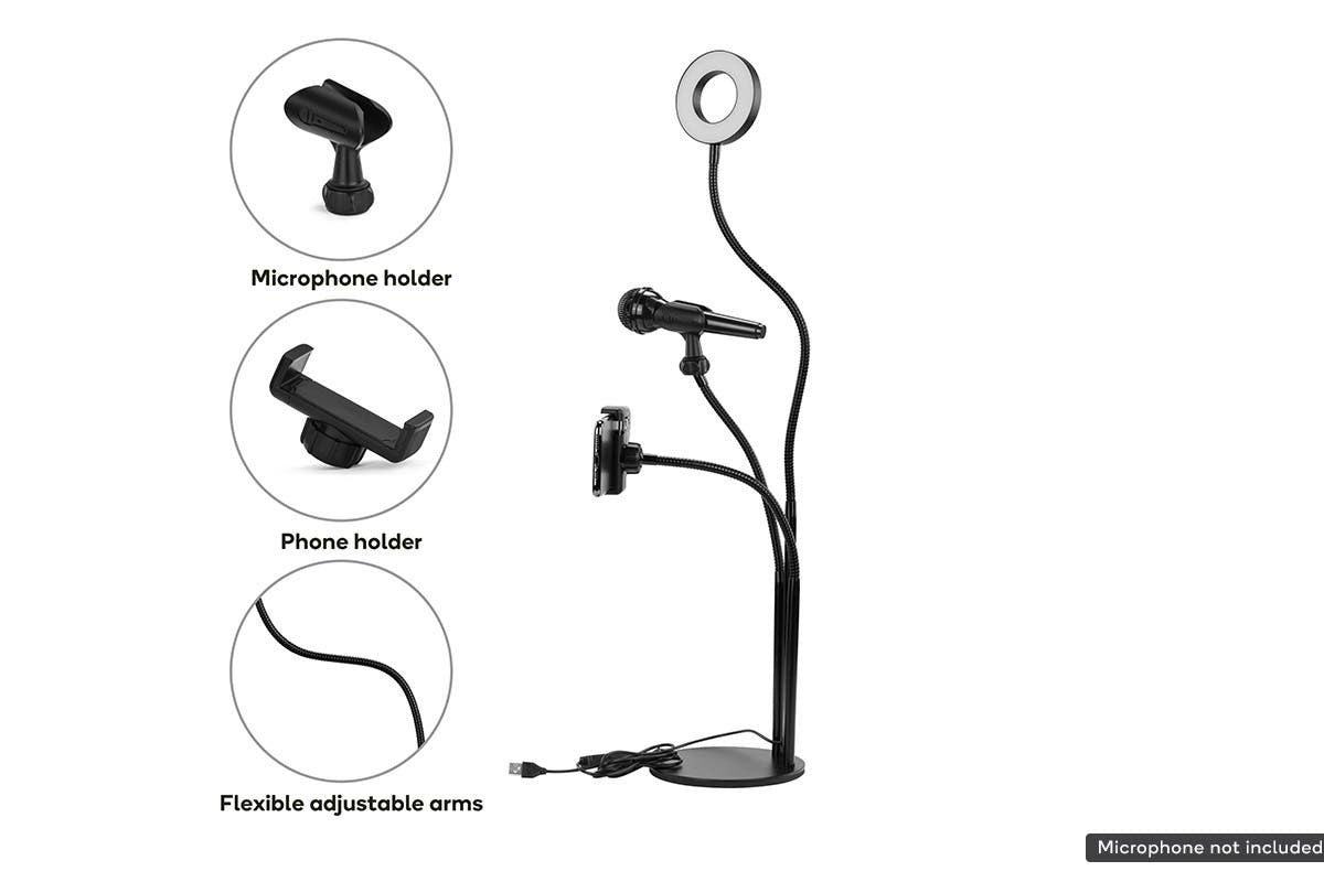 Take the perfect selfie and record videos with greater ease thanks to this handy three-in-one stand that provides you with LED lighting and holds your phone and microphone in place to help you produce quality results every time.