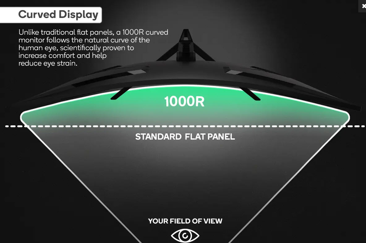 The cutting edge of curved screen technology. 1000R screens match the contours of the human eye to provide unparalleled immersion.