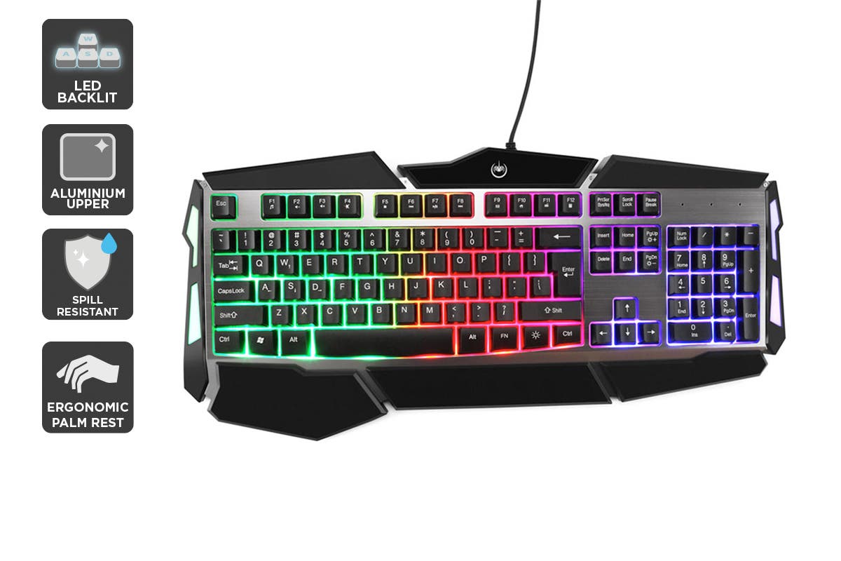Faster than standard keyboards, the Kogan Rainbow Backlit Gaming Keyboard not only rains down bullets on your opponents but does so with gaming-grade precision, comfort and a touch of flair.