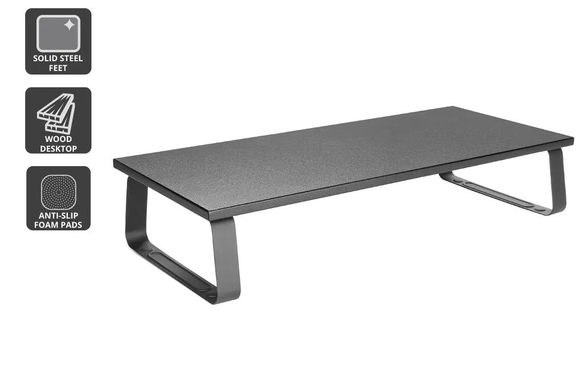 Robust steel frame This monitor stand is durable and will withstand the weight of even the largest monitors, while the anti-slip foam pads protect your device and desktop surface.