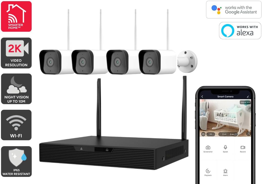 - Kogan SmarterHome™ 4 Channel AI NVR Security Camera System with 4 x 3MP Cameras (1TB, WiFi) - KASMNV