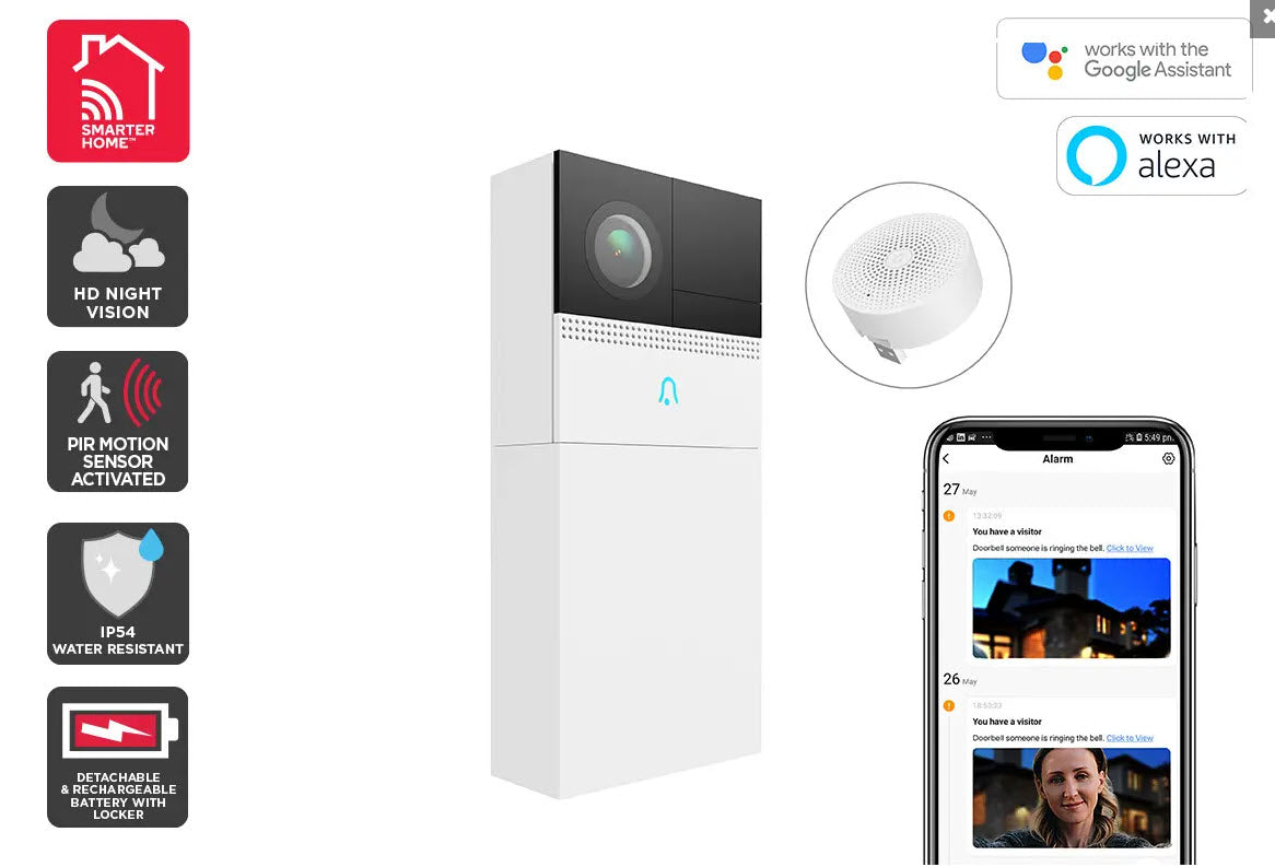 - Kogan SmarterHome™ Security Camera Doorbell 2 Pro (White)