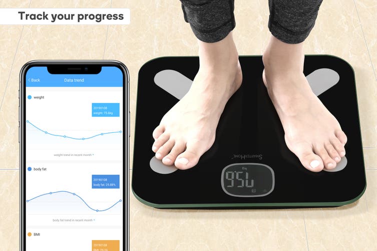 Compare, track and measure your BMI, total body fat and water percentage and bone and muscle mass using the free app, helping you to measure your muscle gain and fat burn progress!