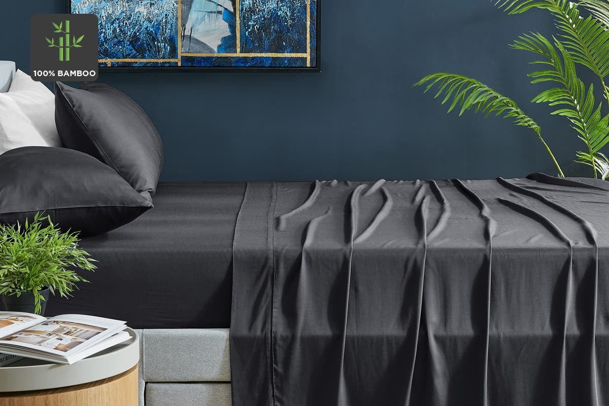 Bring luxurious comfort to the bedroom with the Ovela 100% Natural Bamboo Bed Sheet Set (Queen, Charcoal) that boasts breathable bamboo fibres and temperature-regulating properties that are a dream to curl up under.