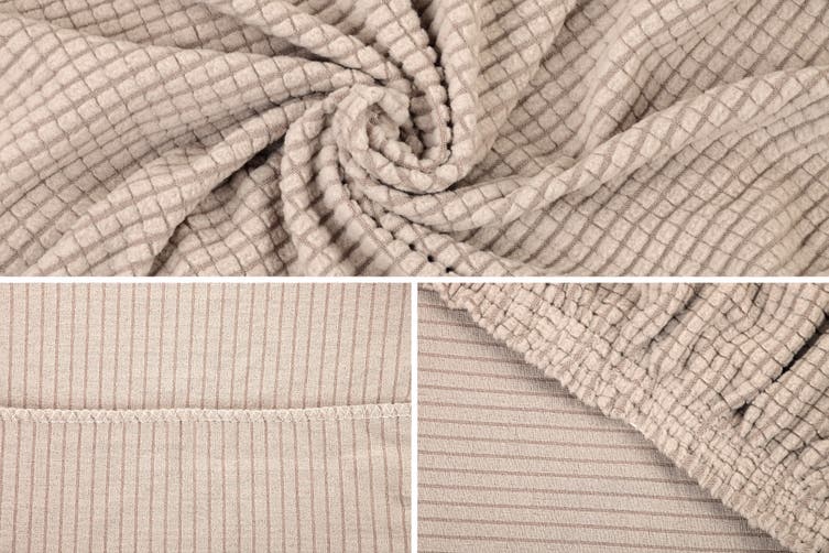 Perfect for hard-to-fit furniture, stretch fabric effortlessly slides over the toughest sections and remains secure and fitted all the time thanks to its four-way stretch fit and sewn-in elastic bottom, while the included foam rolls slide between the edges to keep it firmly in place.