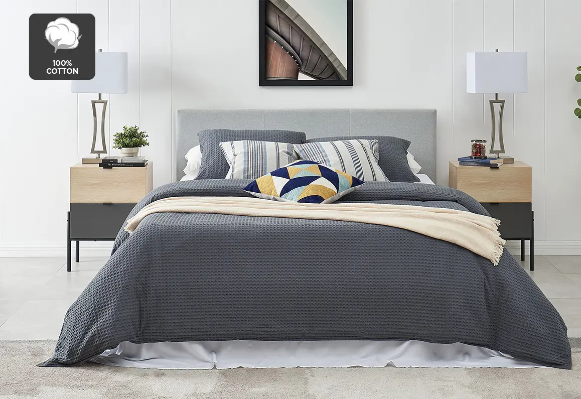 - Premium-quality cotton waffle weave quilt cover set