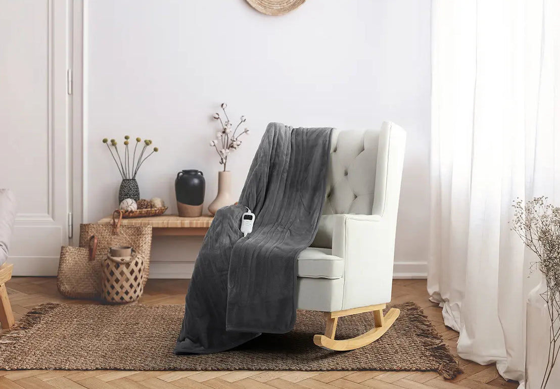 - Ovela Washable Plush Electric Heated Throw Blanket Grey