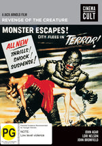 Revenge of the Creature (a.k.a. Return of the Creature and Return of the Creature from the Black Lagoon) is the first sequel to Creature from the Black Lagoon. Directed by Jack Arnold, the film stars John Agar and Lori Nelson. Having previously survived being riddled with bullets, the Gill-man is captured and sent to the Ocean Harbor Oceanarium in Florida, where he is studied by animal psychologist Professor Clete Ferguson (John Agar) and ichthyology student Helen Dobson (Lori Nelson). This was Clint Eastwood's film debut.