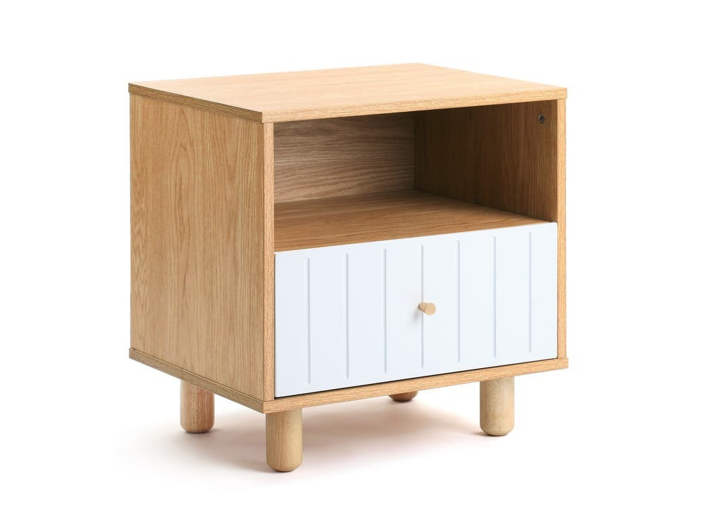 The neutral oak and white colour palette makes this the perfect plinth for a lamp, a vase, a stack of books or whatever you wish to keep handy while you rest.