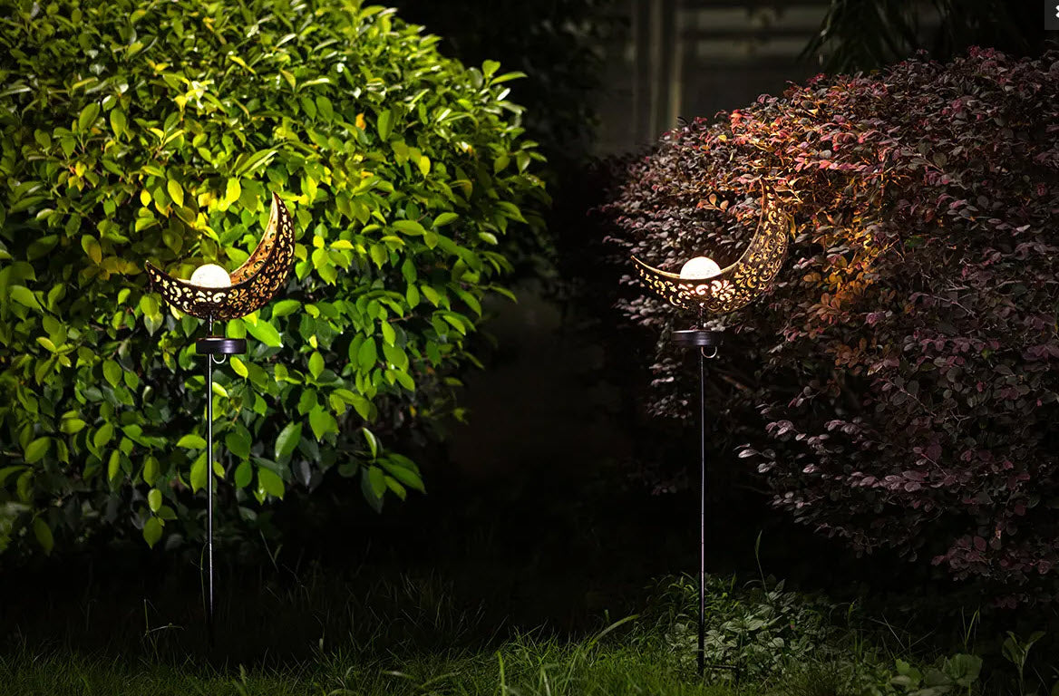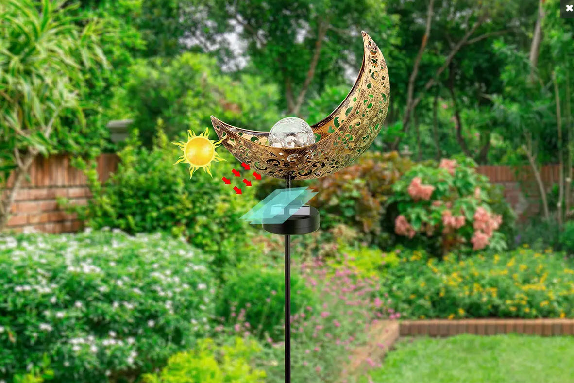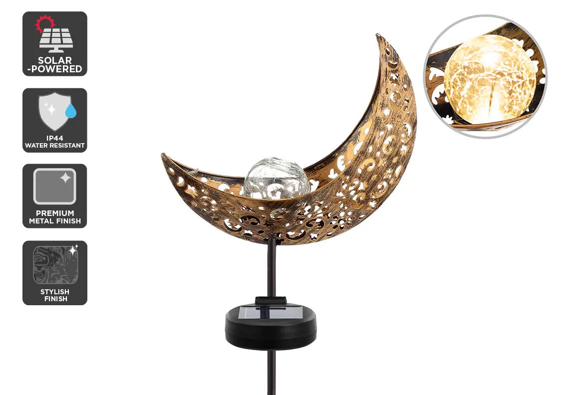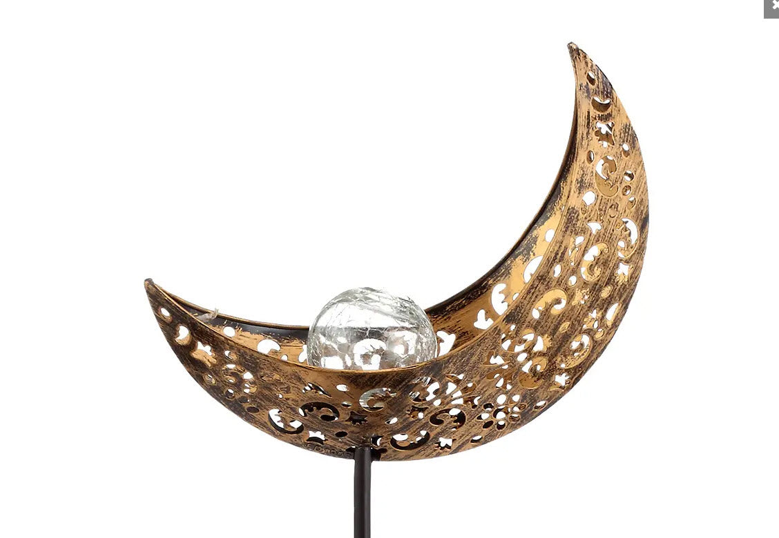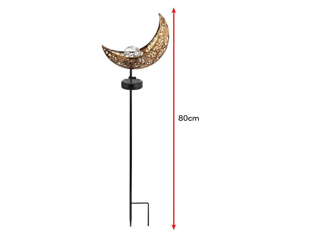 Whether it’s lighting up the walkway, flower bed, front lawn or backyard, the curved crescent moon silhouette and stylish cut-outs create an eye-catching addition to any garden that adds a touch of decorative illumination and mystical charm no matter where it’s placed.