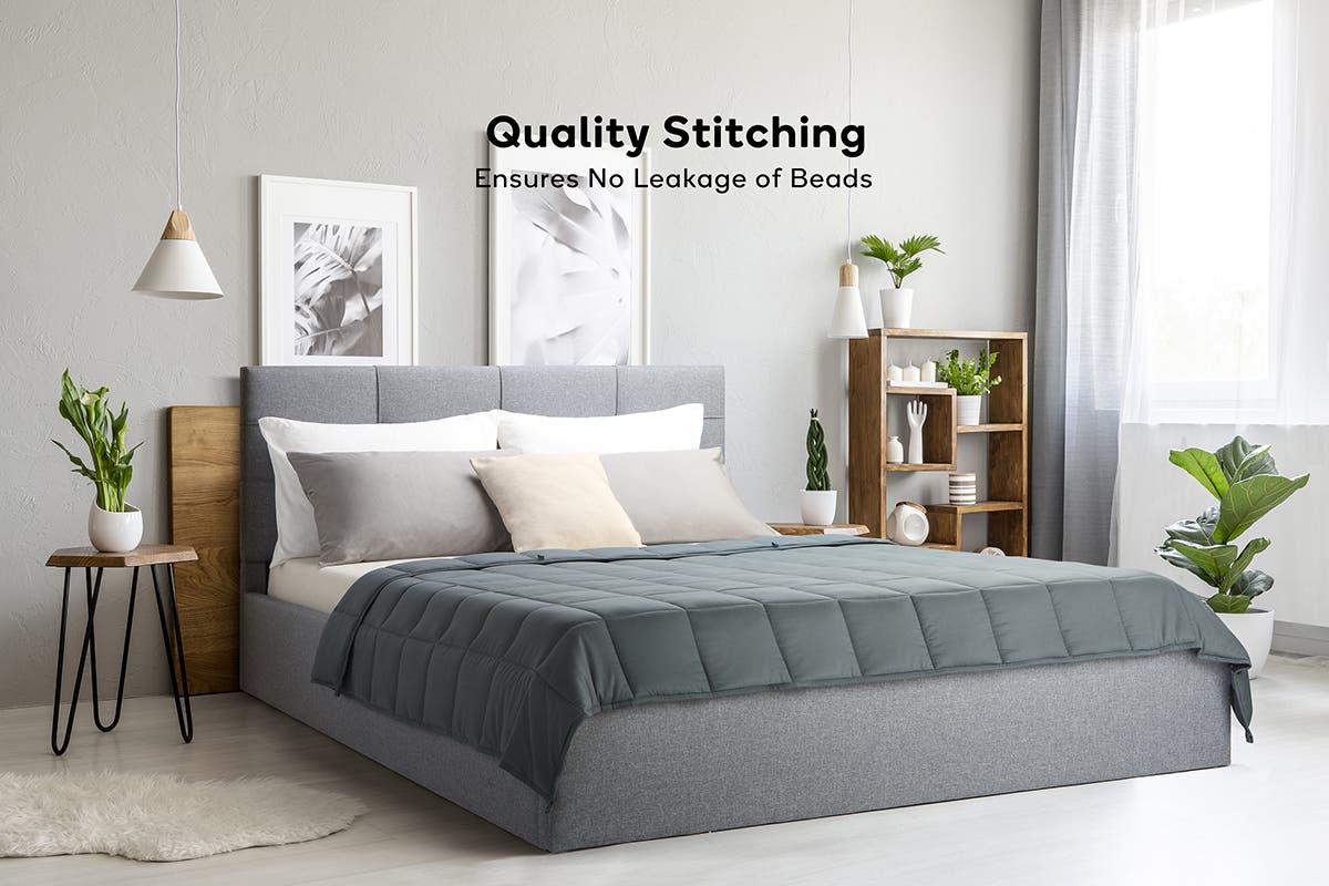 Harnessing the power of Deep Touch Pressure Stimulation with glass beads that self-adapt to your unique body shape and posture, this blanket gently stimulates pressure points across your body, which may help you get to sleep faster while improving the quality of your rest.