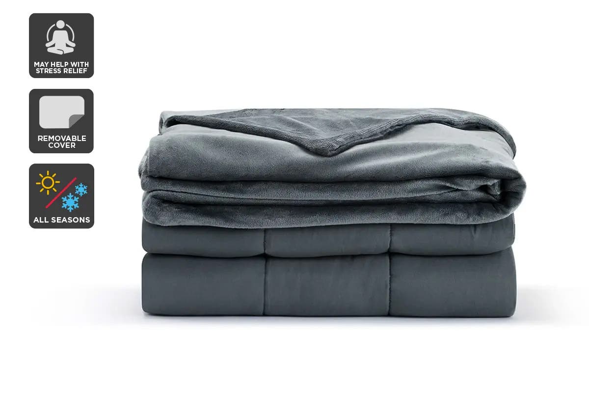Wrap yourself up in the weighted comfort of the Trafalgar All Seasons Weighted Blanket, which may help to reduce stress and anxiety so you can sink into a deeper, more restorative night’s sleep.