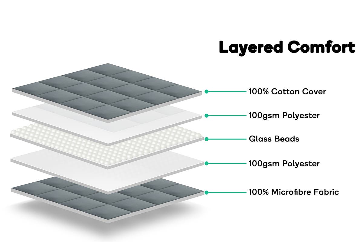 Harnessing the power of Deep Touch Pressure Stimulation with glass beads that self-adapt to your unique body shape and posture, this blanket gently stimulates pressure points across your body, which may help you get to sleep faster while improving the quality of your rest.
