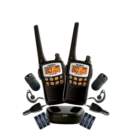 Consisting of2 x UH710SX-NB UHF Radios1 x Hard Carry Case2 x Heavy Duty Earpiece Microphone6x AA Ni-MH 700mAh Batteries1 x Double Desktop Charge Cradle1 x AC Adaptor2 x Belt Clips